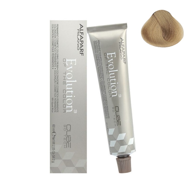 Farba z serii Evolution of the Color marki Alfaparf zapewnia doskonałość koloru oraz pielęgnację włosów na najwyższym poziomie. Od dziś nie musisz wybierać pomiędzy nowym odcieniem pasm a zdrowiem kosmyków. Farba posiada najmniejszą zawartość amoniaku wśród farb dostępnych na rynku - jedynie 0,7%, dzięki czemu Twoje włosy nie niszczą się podczas zabiegu utleniania. Sprawia, że włosy po zabiegu koloryzującym stają się miękkie, odżywione, nie plączą się i łatwo rozczesują. Farba Evolution Of The Color Cube bazuje na unikalnej technologii 3D, oznacza to, że 3 ekskluzywne składniki działają na włosy w trzech następujących po sobie fazach: