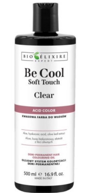 Bioelixire Expert Soft Touch Be Cool CLEAR (500 ml) to bezbarwna, bezamoniakowa baza do personalizacji koloryzacji i zabiegów nabłyszczających. Pozwala na tworzenie pastelowych odcieni oraz wykonanie profesjonalnej laminacji włosów, która nadaje im wyjątkową gładkość i blask. Dzięki formule Soft Touch produkt jest bezpieczny dla struktury włosa, a duże opakowanie zapewnia maksymalną wydajność.