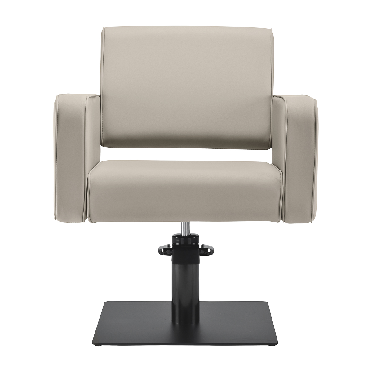 Fotel fryzjerski Gabbiano Bilbao łączy minimalistyczny design z funkcjonalnością i wygodą codziennego użytkowania. Subtelnie zaokrąglone linie nadają mu lekkości i nowoczesnego charakteru, a stabilna, kwadratowa podstawa w matowej czerni podkreśla jego stylowy wygląd. Miękkie wypełnienie w połączeniu z przyjemną w dotyku skórą syntetyczną w odcieniach szarości i beżu zapewnia wygodę nawet podczas długich zabiegów. Starannie dobrane materiały gwarantują trwałość, odporność na wilgoć oraz łatwość czyszczenia. Fotel doskonale komponuje się zarówno z nowoczesnymi, jak i klasycznymi aranżacjami, nadając salonowi profesjonalnego charakteru.