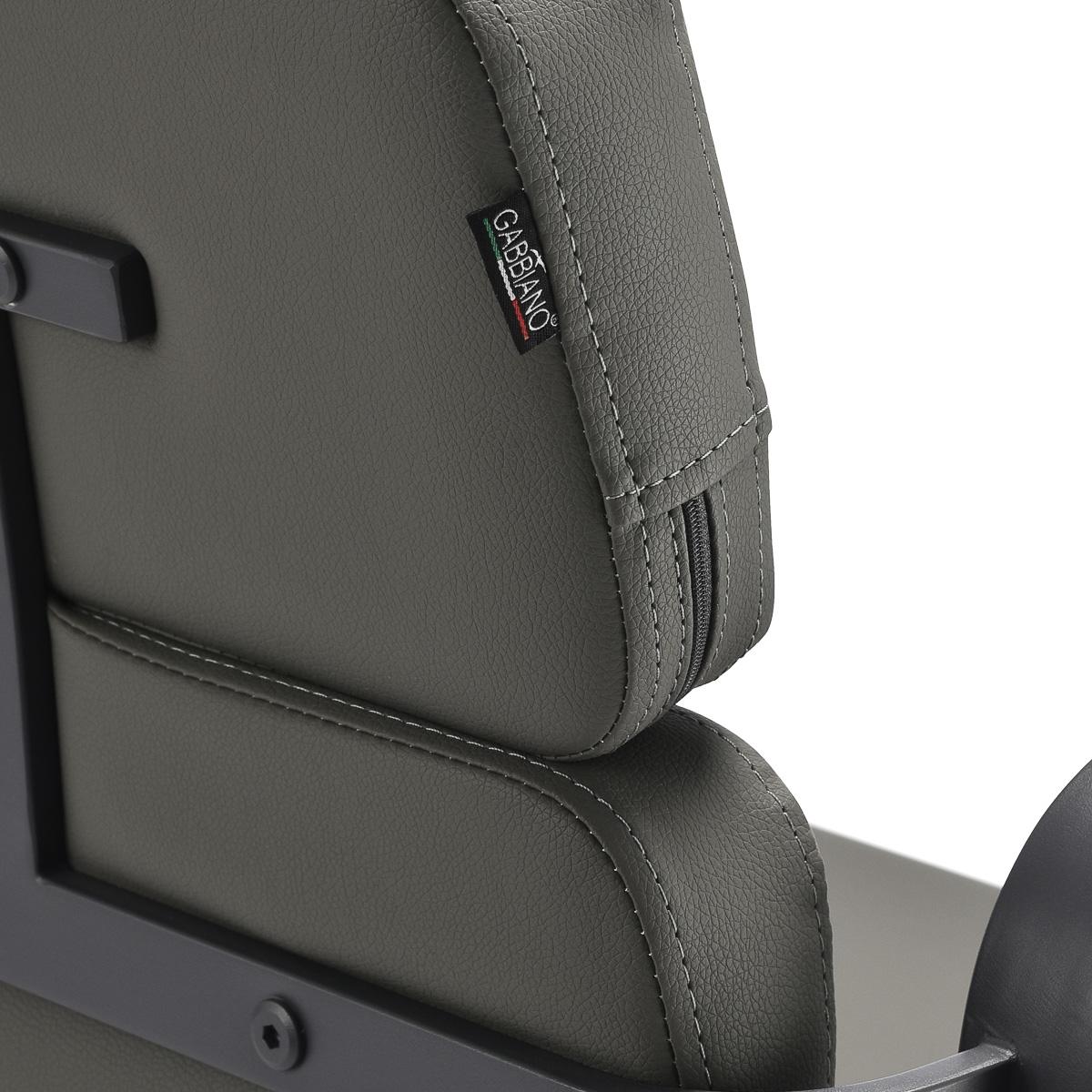 Wypełnienie z trwałej, odpornej na odkształcenia pianki oraz obicie wykonane z przyjemnej w dotyku skóry syntetycznej zapewniają trwałość mebla i jego komfortowe użytkowanie przez długi czas. Sprawiają również, że sprzęt jest odporny na wilgoć, wytrzymały oraz łatwy do czyszczenia. Pokrycie w odcieniach szarości nadaje mu wyjątkowego charakteru. Sprzęt wyróżnia nowoczesny design, który sprawia, że fotel będzie doskonale prezentować się w wielu profesjonalnych salonach.