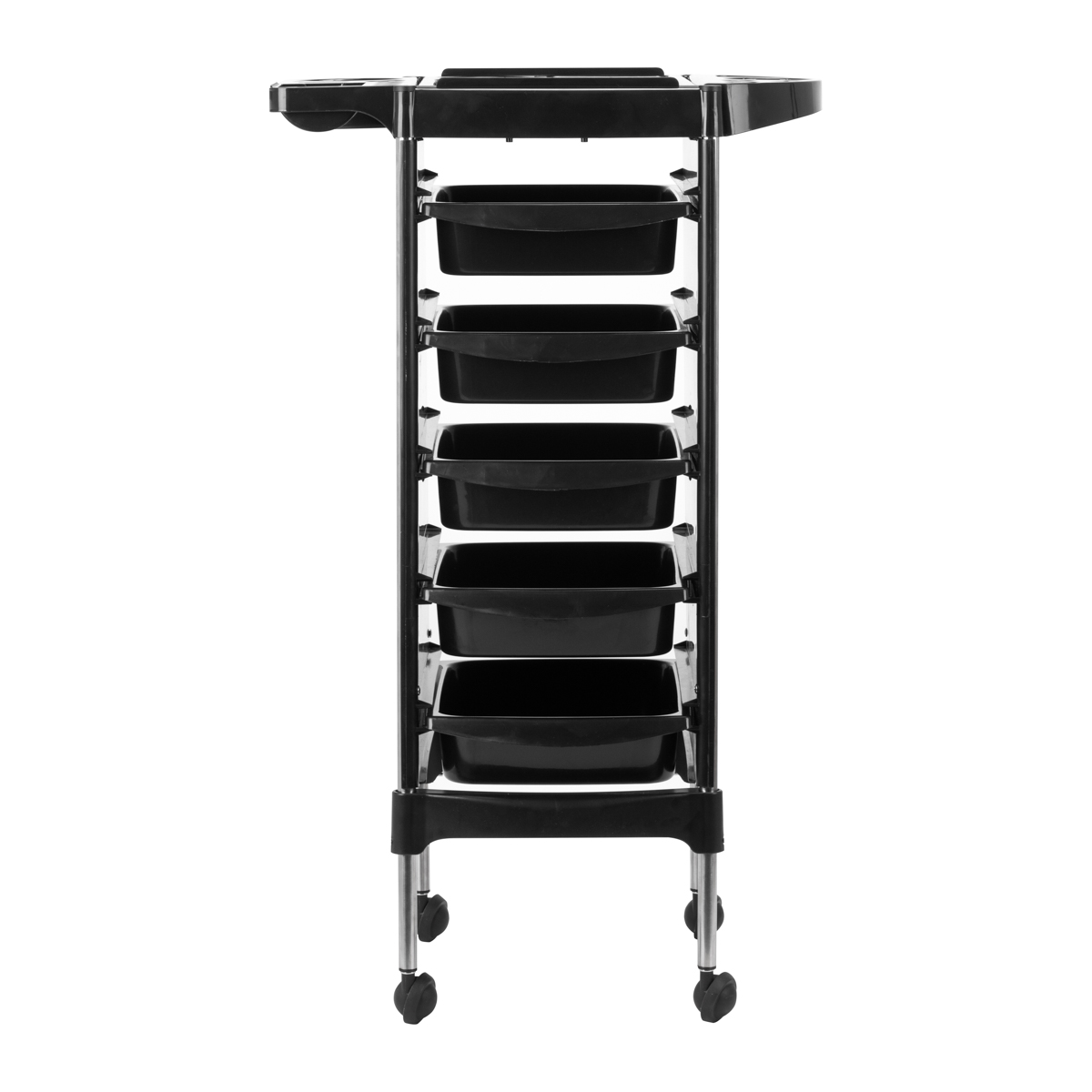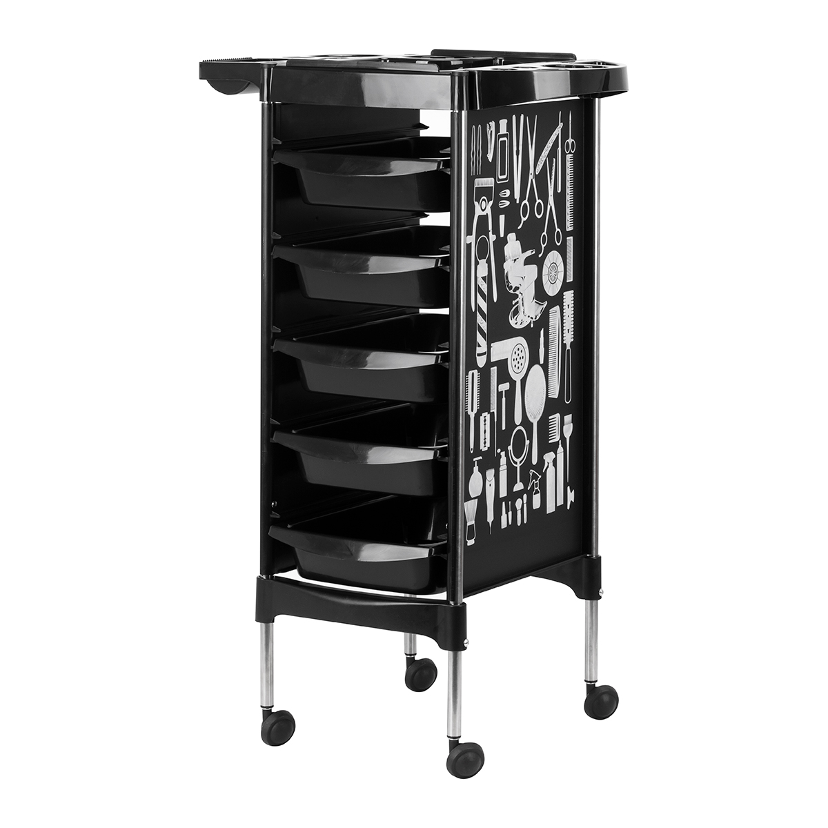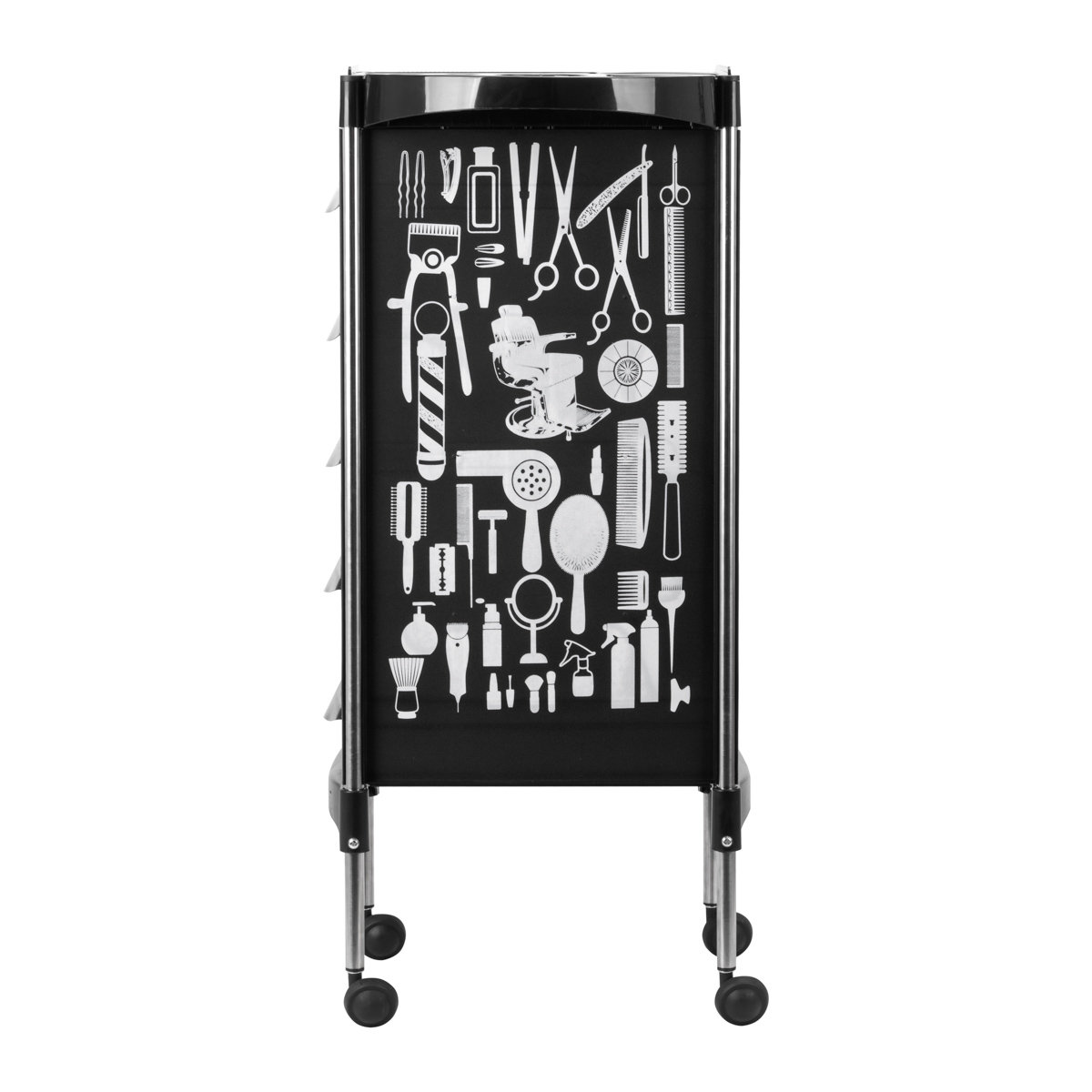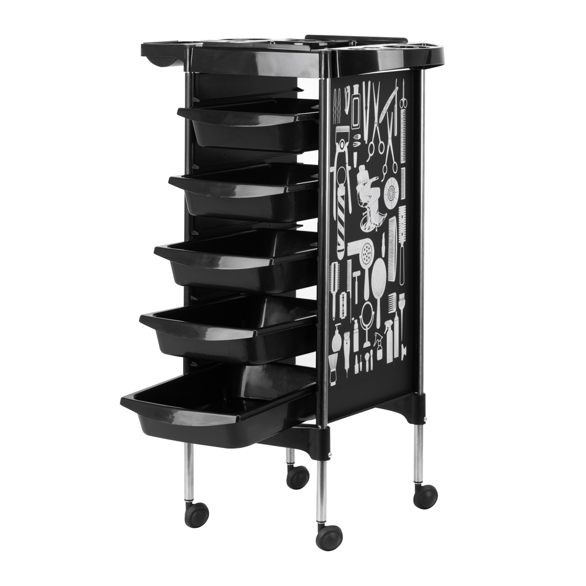 Posiada 5 szuflad na sprzęt, przybory i inne akcesoria fryzjerskie.