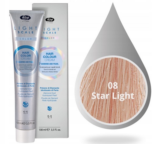 LISAP LIGHT SCALE 08 STAR LIGHT to profesjonalny toner, który przenosi salon fryzjerski do Twojego domu. Jego różowo-perłowy odcień został precyzyjnie dobrany, aby idealnie stapiać się z jasnymi włosami, tworząc wielowymiarowy, bajkowy efekt. Tonery z serii LISAP LIGHT SCALE są zaprojektowane do pracy na włosach rozjaśnionych, o poziomie blondu 8 lub jaśniejszym, co gwarantuje widoczny i piękny rezultat.