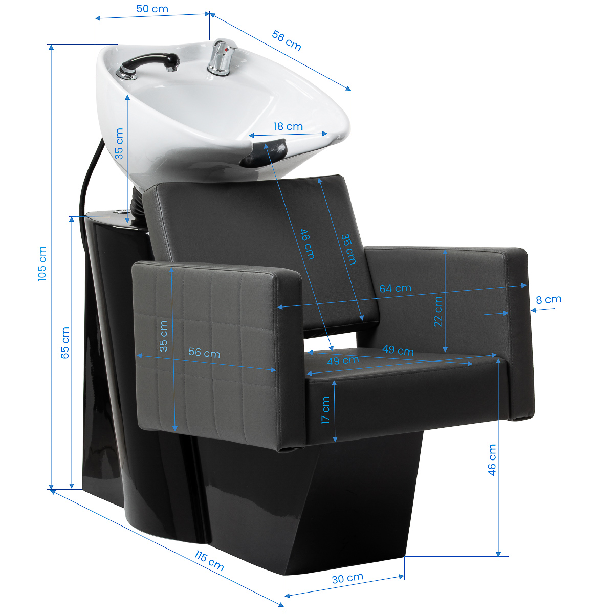 Stylowa myjnia fryzjerska Ankara z fotelem o geometrycznych kształtach wspiera sprawne przeprowadzanie zabiegów pielęgnacyjnych i mycia włosów. Została zaprojektowana z myślą o funkcjonalnym wyposażeniu salonów fryzjerskich. Zintegrowana konstrukcja zapewnia wygodę zarówno dla fryzjera, jak i klienta, a staranne wykonanie z efektownym bocznym przeszyciem sprawia, że staje się ozdobą każdego wnętrza.