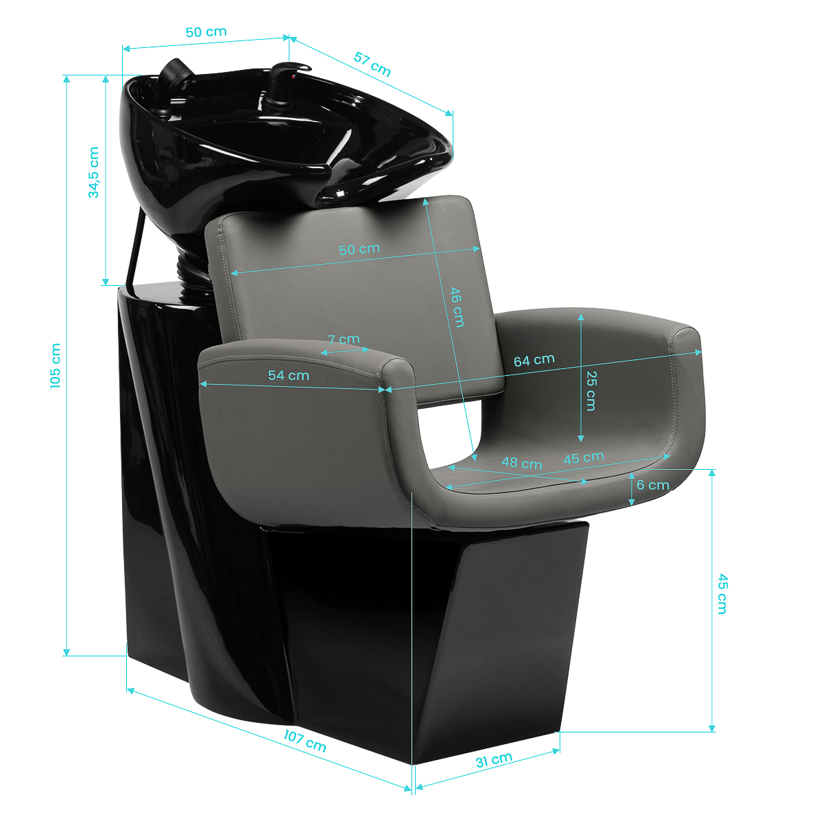 Myjnia fryzjerska Gabbiano Mataro łączy funkcjonalność, komfort i nowoczesny design. Prosty, minimalistyczny fotel o ciekawie zaokrąglonym siedzisku umożliwia wygodne przeprowadzanie zabiegów pielęgnacyjnych oraz komfortowe mycie włosów. Zintegrowana konstrukcja i ergonomiczny kształt siedziska zapewniają wygodę klienta, a jednocześnie wspierają komfort pracy fryzjera. Stylowa forma mebla podkreśla charakter wnętrza, dodając mu profesjonalnego, współczesnego wyglądu.