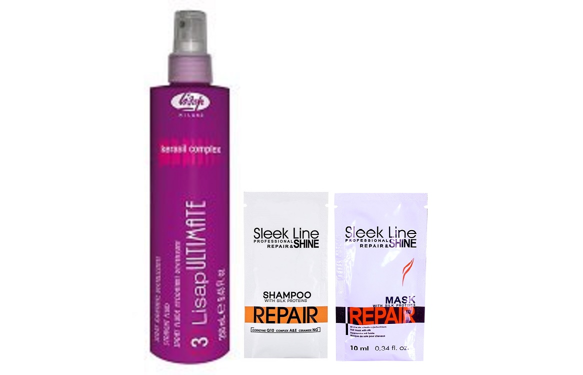 Zestaw Lisap Spray Do Prostowania Włosów 250 ml + Maska SLEEK LINE + Szampon SLEEK LINE